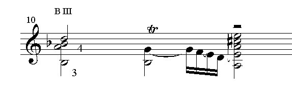 Intégrer ce fait implique de rajouter un la médium supplémentaire, qui produit une dissonance la-sib expressive sur l’accord du premier temps. Pour rendre compte de cet effet, il est nécessaire de jouer l’accord en troisième position :