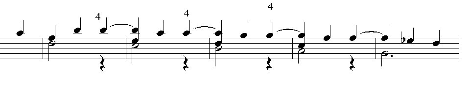 Le guitariste classique, soucieux de garder la conduite des voix polyphoniques, comme dans une fugue de Bach, souhaitera probablement conserver la voix médiane sol-fa-mi sur la deuxième corde :