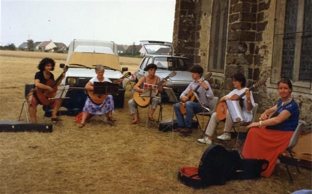 Nous avons également beaucoup participé aux « Cénomanies », qui étaient une grande fête historique dans le vieux Mans, une manifestation populaire très suivie organisée par la municipalité. Les visiteurs costumés avaient l’entrée gratuite ! Nous faisions des concerts de musique ancienne nous aussi en costume d’époque, avec un programme différent selon la thématique de l’année : Moyen-âge, Renaissance, XVIIIè siècle…Nous y jouions en tant qu’association « guitare et musique », en mêlant professionnels et amateurs, alternant solos et ensembles d’une dizaine de musiciens, accompagnant parfois d’autres instruments, comme le violon. Les concerts duraient 35 minutes, nous en faisions trois ou quatre dans une journée, samedi et dimanche ! Le public était très réceptif, il faisait la queue dehors, et c’était systématiquement plein.