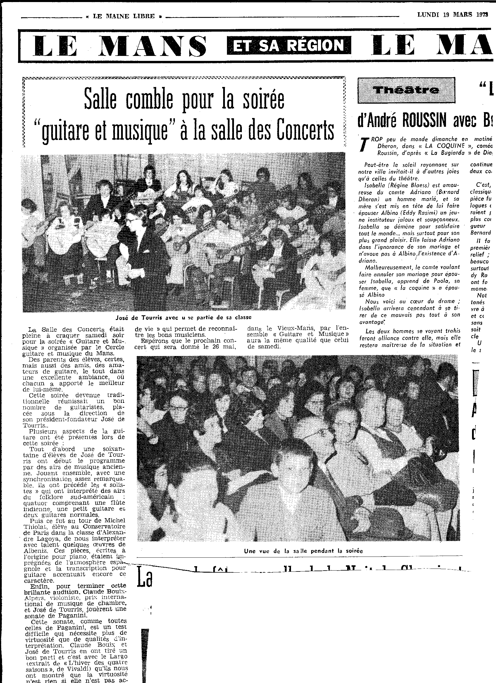 Au Mans, nous collaborions avec le cercle « guitare et musique », qui était à la fois une revue consacrée à la guitare et une association pour laquelle nous étions devenus naturellement et amicalement des correspondants. J’y ai publié quelques arrangements. Gilbert Imbar est venu plusieurs fois au Mans, nous y avons organisé des concerts.