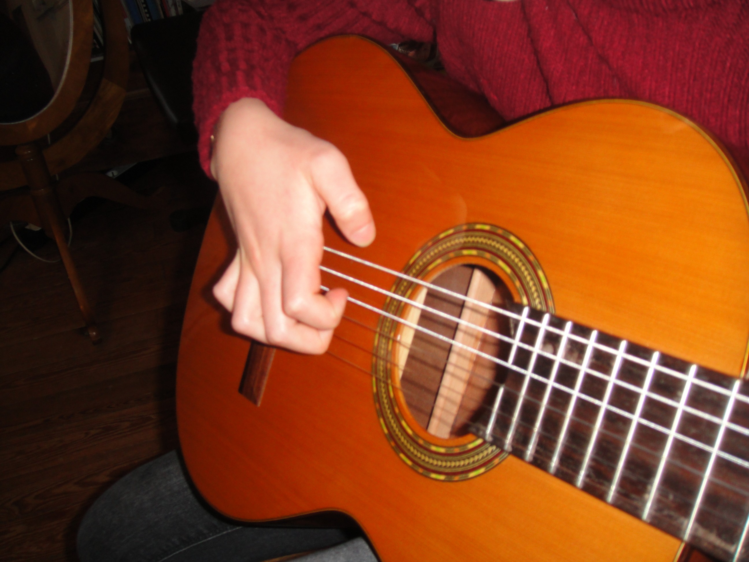 Je prévois de publier des articles relatifs à la position de la main droite, mais dans cette attente je ne peux que vous recommander de vous référer au livre de Marc Papillon, la main du guitariste, éditions Alexitère, qui est une référence en la matière.